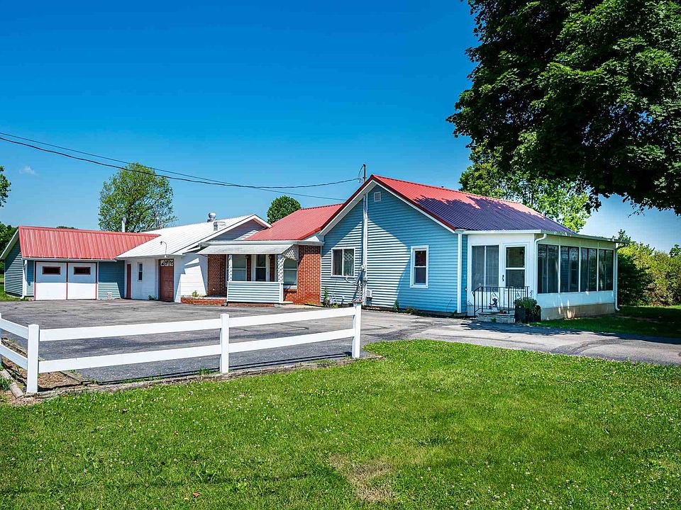 Nestled on 1 acre, you will find this 3 bedroom, 2 bath home with a 4 car garage and barn This home features an enclosed front porch, spacious living room with hardwood flooring, main floor laundry, an eat-in kitchen with built in china cabinet, primary bedroom ensuite with built-ins, two additional spacious bedrooms, main bathroom has been recently updated with custom walk-in shower and new vanity. Additional updates include: new flooring, siding, metal roof, and blown in insulation in the attic.