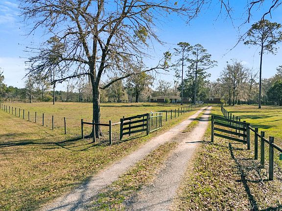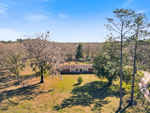 A convenient escape...situated off a paved road, less than 2 miles from downtown Lake Butler, this sprawling 9.28 acre ranch home offers 2,164 sq/ft of living space with large oversized detached garage and enclosed breezeway. This classic burnt clay traditional brick home offers 3 bedrooms (w/bonus room), 2.5 bath with ample living space and large cozy living room with wood beams. Very clean and well maintained providing a canvas ready for your personal style to come alive. This stunning ranch has a perfect blend of pasture and mature oaks/hardwoods, that's fenced and cross fenced with groundwater source, corral and chute, providing a haven for livestock to roam while you enjoy peaceful pasture views from a massive covered rear porch. New interior paint and windows in 2023. This home offers the privacy of country living and convenience of local amenities. Just 2 miles from Lake Side Park Boat Ramp. This is a must see! Your rural paradise awaits.
