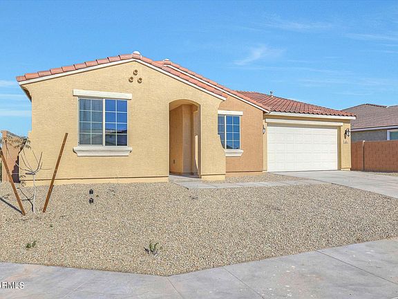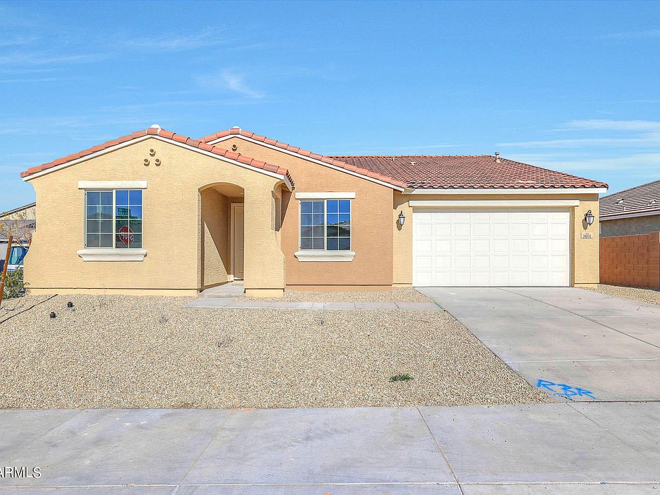 New home Ready for move-in. Single-story Kensington floorplan with Spanish exterior elevation style. This 4-bedroom home with an enclosed den, offers an Owner's Suite and guest suite. The gourmet kitchen features stainless steel appliances with wall oven, chimney-style ventilating hood The stylish warm brown cabinetry is complemented by upgraded quartz countertops. Great home for spring move-in! Home warranty included.