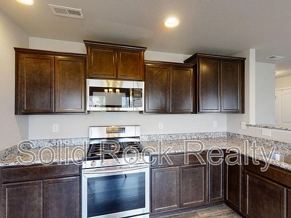 A beautiful 3 Bed/ 2.5 Bath single home in Fountain! Open floorpan with gorgeous kitchen and a living-dining combo with a sliding door, leading to the patio and fully fenced backyard; a guest bathroom is on the main level as well. Three bedrooms are upstairs; the Primary bedroom has a 5-piece en-suite bathroom and a big walk-in closet! A laundry room with a Washer and Dryer included. Two other bedrooms share another full bathroom. Property is equipped with Central A/C! Located in a quiet, professionally landscaped neighborhood with parks and trails nearby; HOA amenities include an outdoor pool, playground, and gym! Close to Ft Carson, Colorado Springs Airport, Peterson AFB.