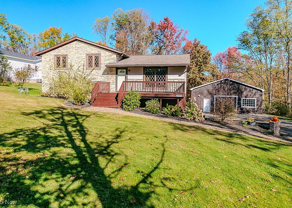 Welcome to this beautifully updated, move-in ready home in Newbury Township—located within the desirable West Geauga School District! This charming 3-bedroom, 2-bath split-level home truly has it all, including an incredible 40x32 accessory building perfect for storing equipment, vehicles, or all your favorite toys. As you approach, you’re greeted by a welcoming front porch—ideal for relaxing and enjoying peaceful country evenings. Step inside to a bright and inviting main level currently set up as a dining area that flows seamlessly into the stunning kitchen, featuring white cabinetry, a stylish tile backsplash and appliances to stay. From the kitchen, double doors lead out to a spacious back deck overlooking the serene backyard. The lower level offers a warm and cozy family room highlighted by a beautiful stone, wood-burning fireplace and direct access to the back patio—perfect for entertaining or quiet nights by the fire. This level also includes a full bath, laundry area, and utility room with extra storage space. Upstairs, you’ll find three generously sized bedrooms and another full bath. In addition to the attached two-car garage, you’ll love the impressive 40x32 detached building—fully insulated, heated, and equipped with electric and 220 line, water, and a floor drain. It’s the ultimate workshop, hobby space, or storage solution. Some updated include: Roof 2022, Luxury vinyl plank flooring 2022, Water heater 2020, Well pressure tank and softener 2018, Furnace 2018, Natural gas line conversion 2018, Barn electric panel 2018, Barn heater 2017 and insulation 2017, and Septic 2016. All this and the home comes with a 1-year warranty and home generator! Move right in and start enjoying everything this wonderful property has to offer! Call today for your private showing as this one won't last long!