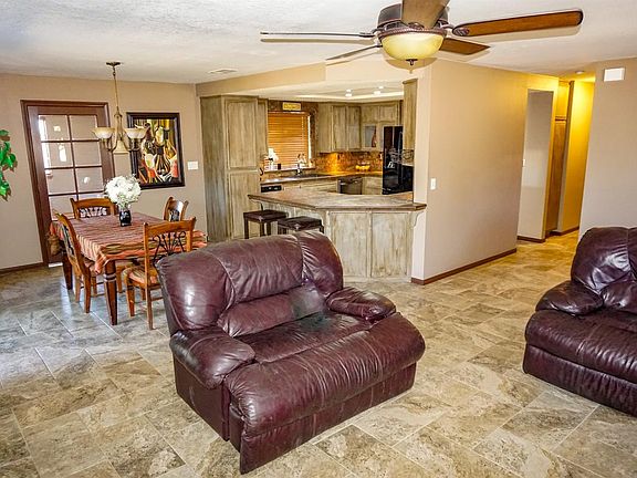 Beautifully upgraded Oak Hills home for sale!! Great amenities include bonus room perfect for an office, enclosed spa room with views, Giant outdoor covered bar, and RV parking with dump station and electrical hookups. As you enter into the front door you are greeted by the living room with new tile flooring, updated fans, wood stove with stacked stone surround, and wood blinds. The kitchen has been completely remodeled with stainless steel appliances, a breakfast bar, under cabinet lighting and redone cabinets. There are new light fixtures and fans throughout the entire home along with an indoor laundry room and a 2 car, finished and insulated garage with an automatic opener. This home is close to the freeway for commuters while being far enough away to enjoy the quiet desert nights. It is also great property for truckers, with two gates for easy turn-around. There is a second power pole for R.V. hook-ups including a dump station. The master bedroom has a large walk-in closet. The master bathroom has dual sinks