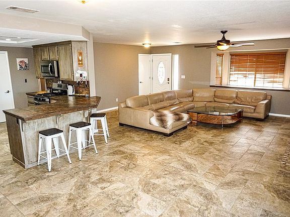 Beautifully upgraded Oak Hills home on over 2.7 acres for sale!! Great amenities include bonus room perfect for an office or 4th bedroom, enclosed spa room with views, Giant outdoor covered bar, and workshop with electric and water. As you enter into the front door you are greeted by the living room with new tile flooring, updated fans, wood stove with stacked stone surround, and faux wood blinds. The kitchen has been completely remodeled with stainless steel appliances, a breakfast bar, under cabinet lighting and refinished cabinets. There are new light fixtures and fans throughout the entire home along with an indoor laundry room and a 2 car, finished and insulated garage with an automatic opener. This home is close to the freeway for commuters while being far enough away to enjoy the quiet desert nights. It is also great property for truckers, with two gates for easy turn-around. There is a second power pole and meter for R.V. hook-ups including a dump station. The master bedroom has a large walk-in closet. The master bathroom has dual sinks and a shower with tile surround.