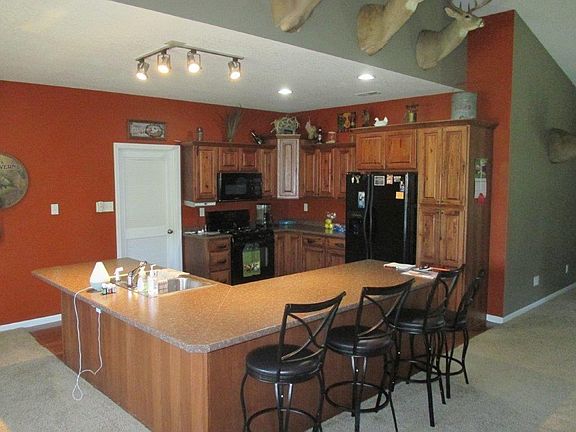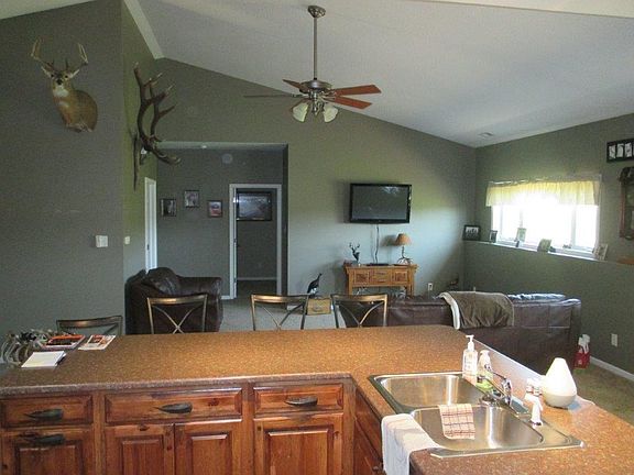 Looking for privacy with fantastic views? This 4 bedroom 3 bathroom home on 5 acres m/l has so much to offer!! Built into the backside of a hill for energy efficiency, yet has plenty of windows to allow tons of natural daylight. Open floor plan with a vaulted ceiling. Large custom kitchen with tons of countertop space and all appliances are included. Great place for a hobby farm for chickens, horses, goats, etc. 3 stall garage is completely finished with a floor drain. An additional 5 acres are available for a total of $315,000.