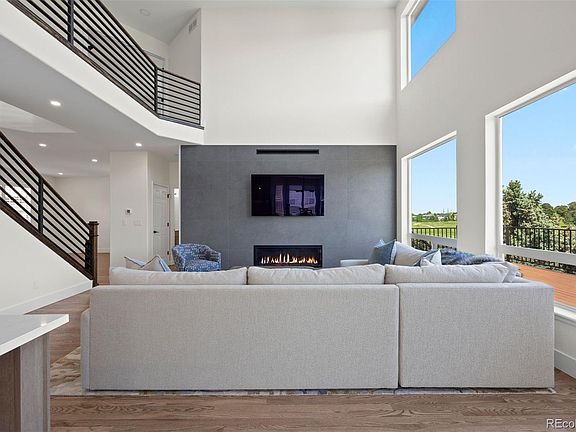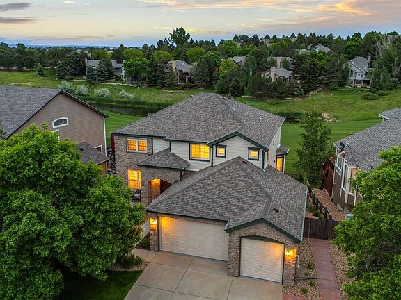 Ideally situated on the Ridge Golf Course in the heart of Castle Pines, this beautifully remodeled 6 bed | 4 bath home showcases modern design, sweeping views, and every single upgrade under the sun. Grounded by refinished hardwood floors and plantation shutters throughout, the main level opens to a formal dining room and cozy living room. Moving to the heart of the home - the open concept great room is anchored by a new 50" linear fireplace with large form tile surround, and features soaring ceilings with bright, oversized windows that showcase stunning outdoor views. The kitchen is completely remodeled with a full Thermador appliance package, custom cabinets, quartz counters, elevated range hood with brass accents, tile backsplash, and a large central island. A sunny breakfast nook opens to the expansive Trex deck, inviting you to unwind at sunset overlook the sprawling green belt and fairway views. A sizable bedroom (currently used as an office), remodeled bath with custom cabinets and marble tile, and a spacious laundry room round out the main level. The upper floor welcomes you with an airy loft (that could be finished as an additional room), and a sizable primary suite featuring a custom built-in closet and spa-like primary bathroom that offers striking marble tile, a freestanding tub, dual vanities, modern light fixtures, and a frameless glass walk-in shower. Two additional bedrooms and an updated bathroom complete this level. Downstairs, a finished walk-out basement offers incredible expansion space with upgraded carpet and paint, a useful wet bar, spacious guest suite, additional bedroom currently used as a gym, a full bathroom, and direct access to a covered patio and beautifully landscaped, fenced-in yard - perfect for seamless indoor-outdoor living. With easy access to I-25, you're minutes from dining, parks, trails, shopping, and top-rated schools. Equally reimagined as it is well cared for, this incredible home is a lucky find for one fortunate buyer!