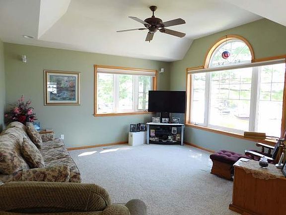Custom, quality built, meticulously maintained Wixom Lake waterfront home. The unassuming but neat as a pin street side view of this home is nice but your home is your castle & this one certainly has that appeal from the water!! 50' on a channel offering an excellent view of the main lake. Catch fish right from your dock or experience any of the all sports activities Wixom Lake offers. Concrete drive leads you to the finished, heated, attached garage. Foyer where you will find a half bath & laundry. Stunning open kitchen, dining & living offering amazing water views! Kitchen has oak cabinets & trim thru out the house is from Oak trees on the property. Center island has a snack bar. There is plentiful cupboard & counter space. DR has a turret ceiling that is so unique & attractive. Deck of DR is great for grilling. Main floor master w/ walk in closet, tiled bath w/ jacuzzi tub & 2nd BR on main floor. Full, finished, walk out basement has family room, full bath and another bedroom!