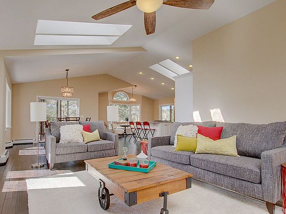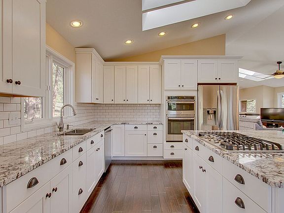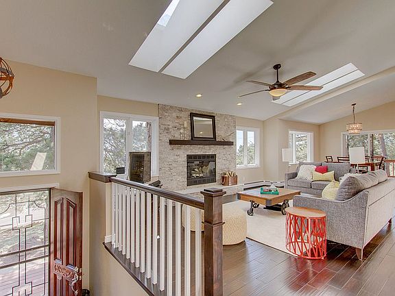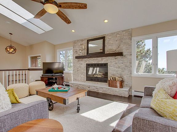Amazing views, close to hiking and biking trails, stunning new remodel, new kitchen cabinets, granite counter tops, soft close drawers, beveled subway tile and double sink in gourmet kitchen, new appliances, open floor plan. Mahogany hardwood floors, new lighting throughout, skylights, ceiling fans. Large master bedroom with luxurious 5 piece bath and walk in closet! VIEWS. Large lot surrounded by trees for privacy. Marble counter tops in all bathrooms. Lower level is completely finished, new radiant floor heat installed with decorative concrete, top of the line full view wood stove, travertine stack stone hearth with a beautiful wood mantel reclaimed from an early 1900's rail car which adds a unique touch. Wrap around deck with natural gas hookup. Bonus cedar and redwood Greenhouse with temperature controlled windows for outdoor garden or storage. Oversized 3 car garage. Meticulously remodeled and maintained. Newer roof, Move in ready!