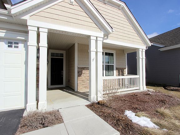Nearly new but a better value! This 2 bedroom, 2 bath ranch is in perfect condition. With an open concept, the home is ideal for entertaining. The spacious kitchen features stainless steel appliances, pantry, butler pantry, 42" maple cabinets, ample counter and cabinet space and a large island with breakfast bar, great for catching up with loved ones while you prepare a lovely meal. Master suite offers his and hers WICs, double sinks and walk-in shower. The 2nd bedroom is located next to the 2nd full bath, great for overnight guests! Relax outside on the cute front porch or head to the covered patio out back. Enjoy resort-style living at Carillon at Cambridge Lakes. This new 55+ community in Pingree Grove offers amazing amenities. Take a stroll on the walking paths that wind through the neighborhood or try your hand at the 3 hole golf course. The clubhouse hosts many activities, classes and events and features a fitness center, indoor and outdoor pools, tennis courts and more!