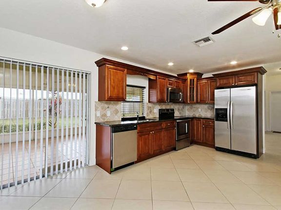 Flawlessly updated CBS homes in central Royal Palm Beach with no HOA! As you approach you will notice the wonderful circular driveway and inviting entryway. Step inside and be greeted by diagonal tile, knockdown throughout and spacious living areas. The brand new kitchen offers gorgeous wood cabinetry, granite counter tops, stainless steel appliances and crown molding. The bathrooms have also been updated with wood vanities and granite counters. All of the bedrooms in this lovely home are also spacious and the master suite comes with a large walk-in closet. There is also a great laundry room inside. Step through the sliding glass doors and enjoy an expansive screened-in patio which overlooks a large backyard with plenty of room for a pool. The backyard is completely fenced in. All of this