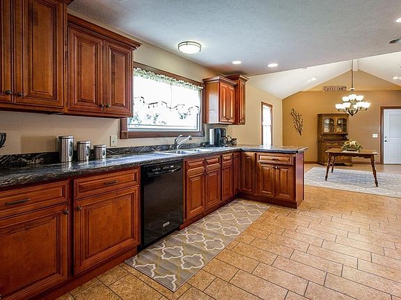 Beautifully renovated home in 2010 offers "like new" living just outside of town. 3 BD, 2BA, city water & sewer, and a great floor plan. Much bigger that it looks! Gorgeous kitchen with lots of cherry cupboards, massive dining room with vaulted ceiling, master bedroom w/master bath and laundry. Enjoy lots of light with 2 sun rooms one w/skylights. One car attached garage w/car port. Large deck out back for privacy and relaxation! Walk to the golf course! Agent owned.