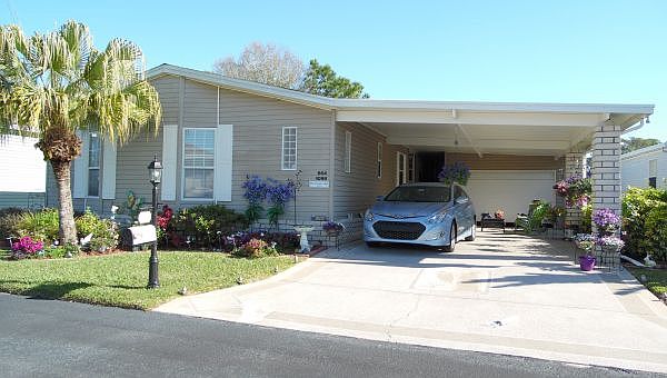 LOVELY HOME....LOVELY VIEW!.......... This lovely home is located in a 55 + gated community with homes on lot leased land. At Four Lakes Golf & Country Club, you own the home but not the land. The monthly lot rent of $628.08 gives you and your guest access to the amenities of the community........... This great find features a bright...open floor plan, tape and texture walls, three bedrooms, two baths, a formal dining room and newer tilt windows........... ... The spacious living room with crown molding is open to the dining area and kitchen which has an island and plenty of counter space and cabinets...plus a built-in desk area........... The master bedroom features a large walk-in closet with mirrored doors, and French doors lead to the master bath with his and her sinks, garden tub, walk-in shower and linen closet........... You can relax and enjoy the beautiful view of the 15th green in the 17 1/2' X 13' Florida room which has deco cement flooring, vinyl windows and heat and air........... The wider deco drive leads to 18 1/2 X14' garage and, of course, a golf cart is included........... This home is partially furnished and all appliances stay. The washer and dryer are located in a laundry room which has storage cabinets and a closet! The heat/air are only two years old and the roof is just five years old. This is a great home at a great price!