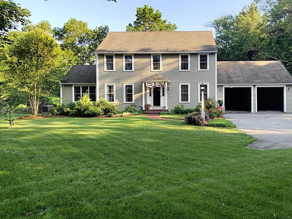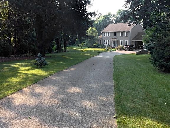 Private 4 acre lot set back on lower Main Street constructed in 2010. This perfectly sized home has spacious light-filled rooms with high ceilings & hardwood floors throughout. The stainless steel kitchen includes refrigerator, plenty of cabinet space, granite countertops and opens up to the cathedral ceiling family room w/gas fireplace. The basement is partially finished. Interior amenities include first floor Laundry with washer & dryer. The exterior features low maintenance vinyl siding and leafguard gutters along with a whole house generator. Enjoy the outside amenities including a heated in-ground gunite pool, deck with large awnings and an outside barbecue area with pizza oven.