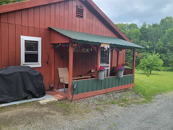 If you enjoy a country setting with some privacy, consider this charming and rustic 3BR home. There is a feeling of warmth and "comfortableness" when you walk through the door. There is a small deck on one side of the house and a small covered porch on the other. There are two open meadows on either side of the driveway; perhaps one side for a pond, w/permitting if applicable, and the the other side, perhaps start your own mini-apple orchard or create gardens. If you enjoy walking in the woods, there area couple of trails to get you started on your hike. There is a large 2-bay garage as well as an additional building with open bays and a small building attached which might be ideal as a garden shed or perhaps an artist's studio. Owner has advised that there are 66 acres of State land behind the property.