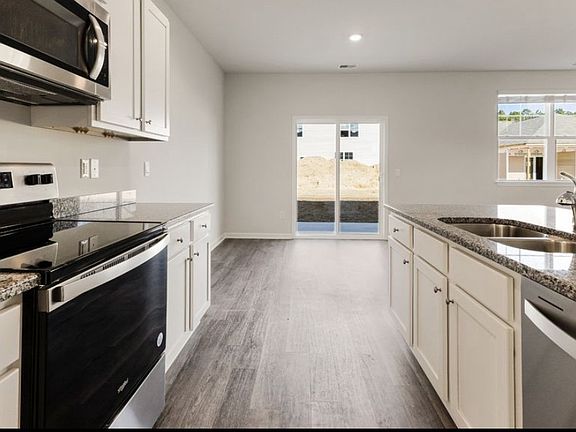 The open-concept kitchen features granite countertops and stainless steel appliances. The kitchen seamlessly connects to the dining and living areas, creating a great space for entertainment.
