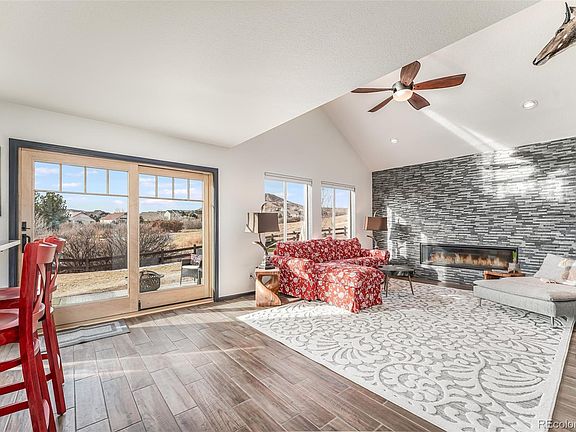 Modern updated home on Red Hawk Golf Course! Over $85k in updates including wood-grain tile flooring, a renovated kitchen, updated bathrooms, new interior paint, matte black hardware & new designer lighting throughout. Enjoy entertaining in the spacious family room boasting a brand-new gas fireplace with an eye-catching split quartzite stone backdrop wall. The well-appointed kitchen includes new SS Kitchen Aid appliances, Luna Blue quartzite counters, center island, 42 cabinetry & a brand-new sliding glass door leading out the back deck. The main floor bedroom is great for guests or a home office. Retreat to your primary suite, complete with vaulted ceilings, walk-in closet and a modern & updated 5-piece bath with marble counters. All new luxury vinyl flooring throughout the upper level. Family movie nights are ideal in the finished basement. A private 5th bedroom & updated bathroom with walk-in shower round out the lower level. Enjoy relaxing in the private backyard taking in the stunning views of Red Hawk golf course & the Santa Fe Quarry Mesa. Custom cellular shades & new screens on all windows. Hurry to book your showing today!