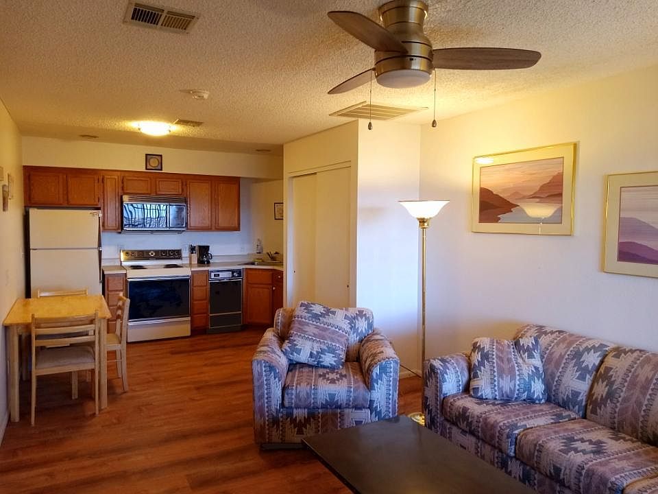 Greenehaven Community in Page Arizona's is a Dark Sky Community w/great views including Kaiparowits Plateau. Lake Powell, Glen Canyon Dam, Lone Rock Beach and Wahweap Marina are only a few minutes away. Lake Powell offers Boating, Fishing, Kayaking and Jet Skiing. Day trips to Zion Canyon, Bryce Canyon, North Rim of Grand Canyon with Monument Valley only several hours away. This is a second floor furnished condo with views from the balcony. Owner pays HOA fees, water, sewer and garbage. Tenant pays electric bill. Cable and Internet are optional for tenant. No smoking. No pets.