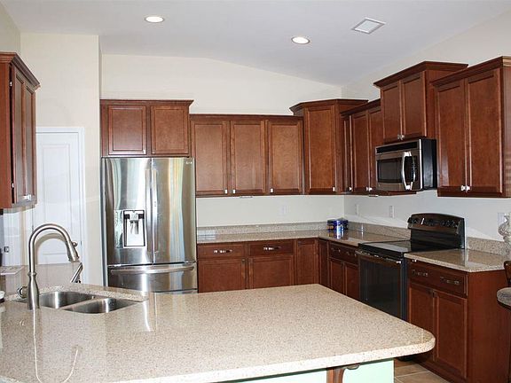 Desirable Layout and bells and whistles make this home ideal for most anyone. This popular Eaton floor plan gives your a lot of natural light from the windows in the kitchen to the sliding doors/transom windows in the living area. The openness allows many layout options from the moment you enter the foyer which flows into the living/dining areas, you will feel the spaciousness of the entire area. Any chef will appreciate cooking while actively engaging with friends/family in the living area. What cook wouldn't love a kitchen with granite tops and beautifully upgraded stainless steel appliances plus this French Door Refrigerator with two pull out drawers for keeping everything organized at your fingertips. Large Screened in porch w/Lake view-enjoy waking up to coffee while watching the sunrise over the lake. Large Master Suite with lake views and spacious walk-in Closet helps make organizing simple. Washer/Dryer included. Sprinkler system w/2 meters for keeping a beautiful lawn and making it economical. Split Bedroom plan for guests and they share a spacious bathroom just off the foyer. Hate leaving the basement back North- this home has ample pull-down storage in the attic with wood flooring. Priced to sell.. Like Brand New but Better Price!!! You will always feel safe and secure with this security system & security camera system in place 24/7. Home qualifies for USDA 0 down financing based upon location.