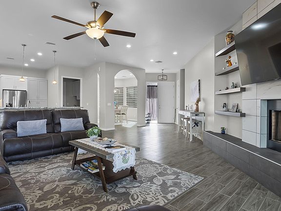 SELLER OFFERING $5000 incentive to Buyer towards Closing Costs. This spectacular, highly desired home showcases a main house with separate quarters of 223 sq ft. The Primary bedroom is its own sanctuary with a stone gas fireplace , sliding doors leading to the patio and an ensuite with a walk in shower and large closet. Soak in the jet tub after a long day in the additional bathroom located in the main house. Modern ceramic tile flooring is featured throughout this amazing home and to stay with the modern theme, you will find granite countertops in the kitchen and bathrooms. The water softener was an addition to this already upgraded house and includes a reverse osmosis in the kitchen. Enjoy evening sunsets and spectacular views from the outdoor balcony. If you need shade in the afternoon there is an electric awning off the patio. Custom blinds accompany all the windows. You can practice your putting on the artificial turf putting green. Also, no need for a charcoal or propane grill, this home has a gas hookup.