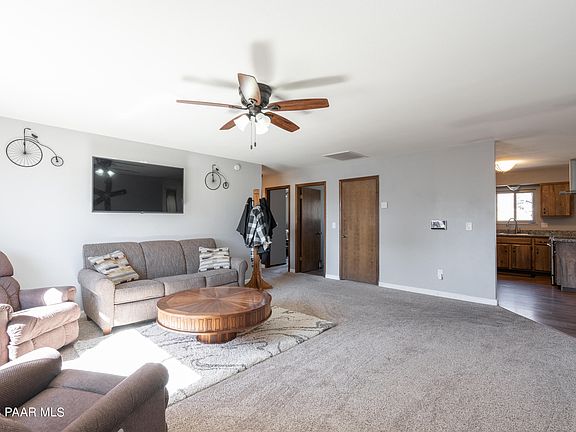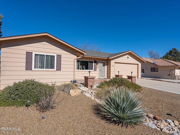 Beautiful golf course home in Prescott Country Club! 2 bedrooms, 2 bathrooms, 2 car garage, 1,484 square feet. Carpet and laminate flooring. Spacious family room. Gorgeous kitchen with granite countertops and breakfast bar. Large laundry room with storage. Potential office space. Fenced backyard with shed/workshop. Property backs up to the golf course. Entertain friends and family on the covered back patio, or just relax and enjoy the beautiful views. There is even space to park your RV beside the home. This is a fantastic home in a great neighborhood. Don't wait - come see us today!