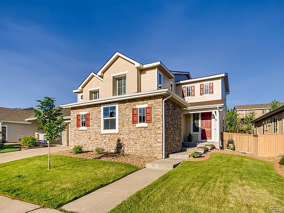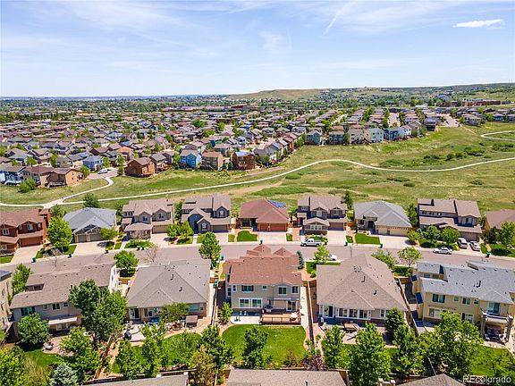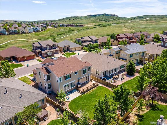 Welcome home to this beautiful and meticulously maintained Alberta model Shea home, one of the largest models in The Hearth. Upon entering the foyer you will immediately notice the stunning vaulted ceilings and hand scraped Acacia wood flooring in the living room. Enjoy the light and bright open concept family room w/ gas fireplace, and large kitchen w/ granite countertops, breakfast nook and hickory pull out cabinets. Formal dining room w/ tray ceilings, perfect for entertaining, a bedroom/home office w/ 3/4 bath, and powder room complete this level. Upstairs, relax in your oversized master bedroom w/ custom walk-in closet and 5 piece bath, including walk in shower and soaking tub. Two additional good-sized bedrooms, a full bath w/ dual sinks, UPSTAIRS LAUNDRY w/ double washer, and a loft, which could easily be converted into a fifth bedroom or home office, complete this level. In the basement, enjoy 1700+ square feet, w/ lots of windows supplying bright light, for your storage or to expand your living space with your own personal finishes. Outside, you will find one of the largest lots in The Hearth, w/ a beautifully landscaped FLAT back yard, with pear, peach and apple trees. Watch the kids play or enjoy a sunny day from the trex deck w/ your lighted, motorized retractable awning. This amazing home also boasts a 3 car garage (not tandem), new carpet and pad, new roof w/ transferable warranty, new exterior paint, and new hot water heater. Neighbors on both sides are ranch homes, allowing an extra feeling of privacy in this home. Minutes to Valor, Rock Canyon, Rocky Heights, and Wildcat Mountain, open enrollment and numerous Charter school options as well. Just blocks to Paintbrush Park, South Ridge Rec Center, and of course the nearly 70 miles of trails and 2500 acres of open space in the wonderful, family friendly community of Highlands Ranch. Be sure to check out the 3D Matterport Tour and Virtual Tours (icons on top left of listing, purple house with arrow).