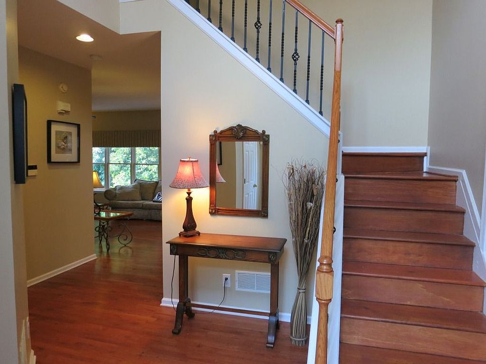 PRICED TO SELL! Beautiful brick front home in popular swim/tennis community in the Northview District! Hardwoods throughout the main floor, granite kitchen, finished basement with huge rec room and full bathroom. Private, wooded fenced yard. Walking distance to shopping and high school. New exterior paint and newer roof. Must see!