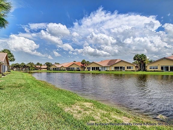 Views! Views! Waterfront 2 bedroom/2 bath/corner villa with garage! This spacious, open, bright & airy property features vaulted ceilings, huge windows, family room, living room & dining room plus Florida room with a/c. Double door entry to fabulous foyer. Split floor plan with master suite on one side & guest bedroom on opposite side of the villa. Walk in closets. Tiled throughout. Inside Laundry room. Beautiful, newer S-Tile roof from 2007. Sweetwater has a low HOA fee of $265 a month includes gated entry, clubhouse, pool, hot tub, tennis, fitness room & more. Sold by Realtor Karen Kerpen 561-929-4737 w/Realty Home Advisors
