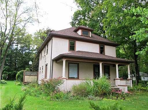 Solid four-square country home. Built in 1915, this home retains much of its original charm with inlaid hardwood floors and traditional wood trim. Spacious and filled with light, this charming two-story on a generous lot also has a large outbuilding and a carriage house with studio apartment. Plenty of room for all your toys and tools. Carriage house has rental possibilities.