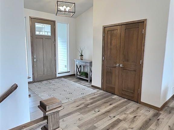 This beautiful home is ready for it's new owner! This home is ready for move-in and has 6 bedrooms, 4 baths and 2 1/2 baths. This home features vaulted ceilings, entertainment built-ins, and beautiful finishes. The great room has double sliders to the covered back patio and a fireplace to keep the room warm during the snowy days. The kitchen has a formal dining area adjacent with a sliding door to the covered patio, making this home perfect for entertaining. The large kitchen has a double-sided island, walk-in pantry, and GE appliances including a double oven, microwave, gas cooktop, and dishwasher. At the end of the day, retreat to the beautiful owner's suite featuring a sliding glass door to the covered patio, beautiful windows allowing the sunshine to come in, and a 5-piece master bath with a walk-in spa shower with a rain shower head, a freestanding tub, double vanity, separate toilet room, and walk-in closet. The main level also has 2 additional bedrooms, each with their own separate adjoining bathrooms. The mud area will have custom built-ins, making it perfect for shoes, backpacks, coats, or whatever your needs may be. The 6 car garage has a 12'x14' RV door and is oversized! Need to fill up your RV's water tank? No problem, use the water spigot in the garage to fill it up! The basement is finished with three bedrooms, 1 full bathroom and a 1/2 bath. Each bedroom have large closets. The great room / entertainment area in the basement is pre-wired for surround sound and a large TV. The wet bar will have a sink, cabinets, and room for a mini-fridge. The rec area leaves room for whatever you may need, whether it be a pool table area, craft area, reading space, etc. Call us today to set an appointment to view this beautiful home!