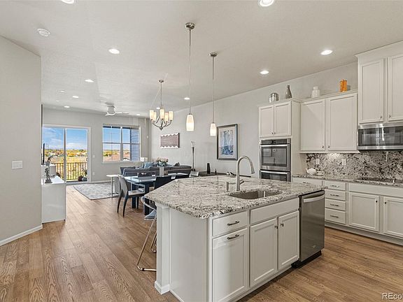 This 3 bed, 3 bath Patio Home sits on one of the most desirable lots in the subdivision! Walk in and immediately notice the panoramic view of Longs Peak and the Flat Irons. Picture yourself eating dinner on the balcony while you watch the sun set. Next, admire the 10 ft ceilings, the open floor plan and the oversized granite, kitchen island. The luxurious, primary bedroom boasts an ensuite with quartz countertops on the double sink, a separate shower room, and a large walk in closet. A 2nd bedroom and bathroom is welcoming and provides options for additional living space. The walk out basement is competely finished with 9 ft ceilings, a wet bar, a guest bedroom and bathroom and two large living areas for recreation and entertainment. An oversized patio completes the basement with more views of the mountain range and promotes the indoor outdoor concept. This 7 year old home is tastefully designed with upgrades throughout. Enjoy more and work less because the landscaping and snow removal is covered through the HOA. The Legacy Ridge West Patio Community offers a golf course, clubhouse, pool and walking trails. This home is conveniently located to shops and restaurants with easy access to HWY 36 and Hwy 25. Hurry! This is a must see and will not last!