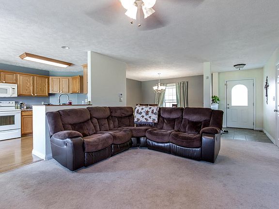 Situated on 1.5 acres, this lovely 3 bed/2 bath home is the perfect starter home for young families! Landscaping & a peaceful front porch greet you upon walking up to the home and into the bright, open living area. Ample natural light flows from the living room into the kitchen with vast cabinets/counters, pantry, access to the back patio, and striking floors that continue into the formal dining room. The master bed/bath features his & her sinks, jetted tub, and walk-in shower. Each of the comfortable bedrooms offer generous closet & storage space. Finally, step outside to the back patio and massive yard with plenty of room for your kids & pets to play for hours. Also included on the property is a 30x40 detached garage/workshop. Don't miss out on making this chic home your own!