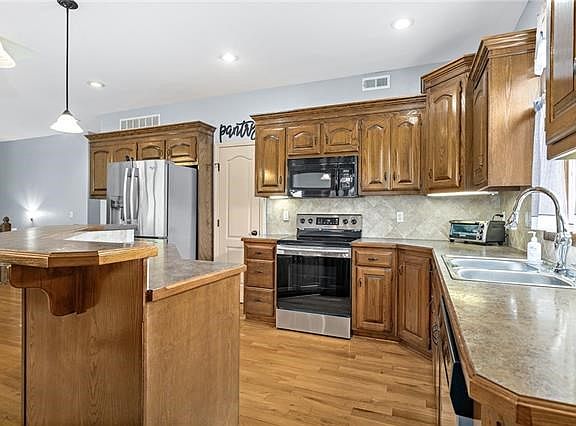 Remarkable ranch in Fallbrook subdivision in Olathe on a cul-de-sac. Very inviting open floor plan with large kitchen island, dining and cozy living room with fireplace. Tons of cabinets and counter space, walk-in pantry, under cabinet and above cabinet lighting. Master bedroom retreat with spa-like bathroom and huge walk-in closet! Work from home, no problem, 3 bedrooms on main level, use one as your office. All-Season sunroom off the dining area, perfect for morning coffee or a great book. Spacious recreation room in lower level, 4th bedroom, bathroom and bonus room (pool room, exercise or play room). Walkable to Stone Pillar Vineyard & Winery. 2021-10-04