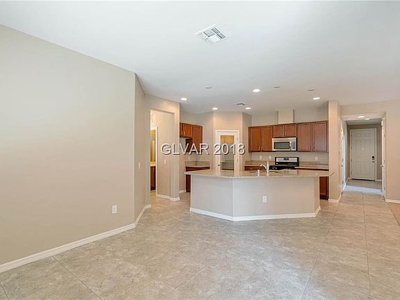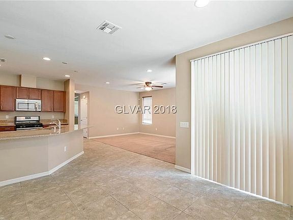 MOVE IN Ready! 3 bed/2.5 bath, 2 story home in Mountains Edge. NEW interior paint thru-out. Living rm in back by kitchen. Kitchen has large island w/breakfast bar, granite counters, SS appliances, walk in pantry w/glass door. 1 bed/bath down. Large split loft. Master w/ensuite bath has double sinks, 2 walk-in closets & walk-in shower. Upstairs laundry rm. Backyard w/covered patio & lawn. Solar panels. Community w/trails & playground! MUST SEE!