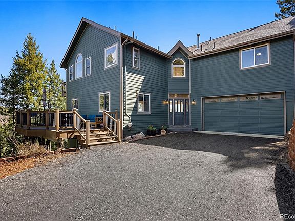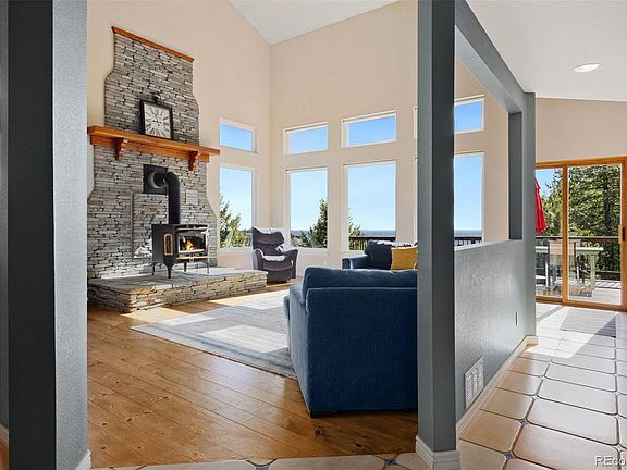 The views from this home are just spectacular and will immediately draw you in! The two story wall of windows in the great room overlook the Chatfield Reservoir and provide an abundance of natural light. This home is adjacent to Deer Creek Canyon Park, a Jeffco Open Space that will preserve your natural view of Wilds Peak to the north. Located on nearly 10 acres, you'll enjoy the privacy this location offers, as well as the plentiful raspberry bushes! You'll feel like you're miles away, but this close-in Littleton foothills home has quick access to retail at 470 and Bowles or Kipling in 20 min. The great room has hardwood floors and a beautiful wood burning stove with stone hearth and accent wall. Work from home in the oversized home office, then enjoy a cool drink after a long day of work on one of the three decks that offer views of your slice of paradise. The bedrooms are all located together on the second floor. The oversized master suite has a sitting area, 5 piece ensuite bath and walk in closet. The lower level has a roomy bonus room, "gear storage" area and separate home gym. There is a covered concrete parking pad at the end of the culdesac at the north side of the property perfect for RV parking. The only thing missing from this home is you! Be sure to check out the home walk through video here: https://bit.ly/MillHollowRd