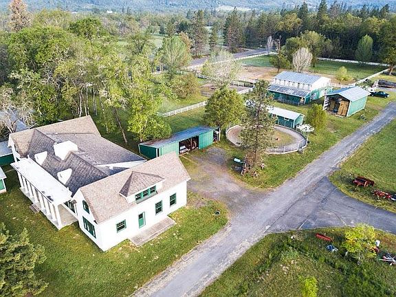 Firefly Ranch and Airfield- Southern Oregon One-of-a-Kind properties. Two scenic tax lots make up over 91 acres of flat usable land. Hay fields, a private 2000' runway, covered & uncovered riding arenas, an aircraft hanger, multiple barns, and complete equine facilities including trails along seasonal creeks through the trees. WILDLIFE galore! Beautiful cared for property with 13 acres irrigated. The original farmhouse is listed with Jackson County. However, the Diamond is the historic 1927 Medco White House office building that was rebuilt as new on property. It incorporates classical Vignola design elements and the 3 bedroom/4 bath interior is beautifully constructed. Although a portion has been completed as office space, the rest of the spacious interior is awaiting the new owners vision. Potential for this property is unlimited: Ranch/Farm, Vineyard/Crops, currently producing large amount of grass hay. Could be utilized for other livestock. This is a must tour property.