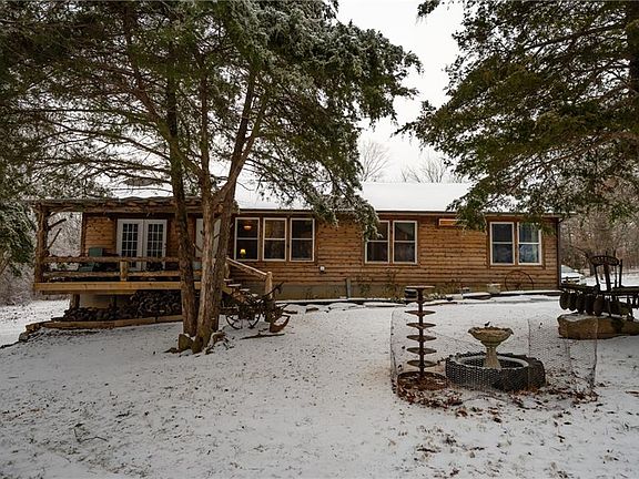 Welcome to your new home, nestled on 3.8 acres of private, wooded land. This beautiful ranch-style home offers a peaceful retreat with stunning outdoor amenities. The open-concept layout features a spacious kitchen with a large center island and a walk-in pantry, flowing seamlessly into the living and dining areas. With 3 bedrooms and 2.5 baths, there’s plenty of space for family and guests. The primary suite includes 2 walk-in closets, a full bathroom with a soaking tub, and an exterior entrance to the deck. The partially finished walkout basement offers endless possibilities for extra living space, abundant storage, or a place to entertain. The basement also features one non-conforming bedroom and the basement walls are insulated concrete forms. Step outside and unwind by the 27x52 beautiful pool, surrounded by a spacious wraparound deck with a cozy fire pit area. Or, enjoy fishing at the pond from the private dock, or relax on one of the covered porches—both front and back—perfect for entertaining or simply enjoying the outdoors. Additionally, this property includes a 5-year-old 24x32 shop and a negotiable storage shed, providing even more functionality and space. The school district is Hudson Grade School and your choice of high schools, Butler, Appleton City, or any adjoining county school. This property offers endless opportunities!