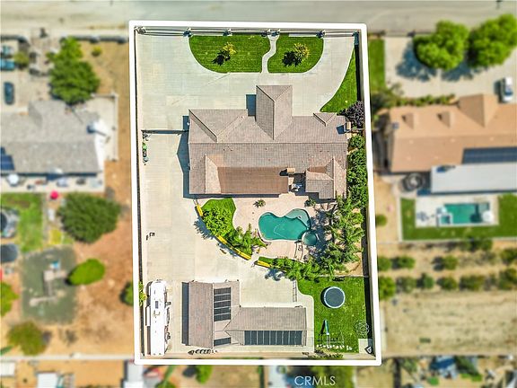 Experience unparalleled luxury living in this extraordinary one-of-a-kind estate. Nestled on almost an acre of beautifully landscaped grounds, this refined 4-bedroom, 4-bathroom home is an exceptional find for those who appreciate quality living. With 4,200 square feet of luxurious living space, the home presents soaring ceilings and refined custom finishes that exude sophistication in every detail. The gourmet chef’s kitchen is a culinary delight with a large walk in pantry, top of the line JennAir appliances including an impressive 8-burner gas range with dual ovens and JennAir built in fridge, dual dishwashers, custom cabinetry with shelf pull outs, high end drawers, and a spacious island. The primary bedroom serves as a luxurious retreat, with an inviting fireplace that add warmth and elegance to the space. Attached is a spa-inspired bathroom featuring a walk-in shower with dual showerheads, as well as separate Jacuzzi soaking tubs for ultimate relaxation. The approximately 300-square-foot walk-in closet is custom built, complete with drawers, a TV, and elegant chandeliers, providing ample storage and convenience. Additionally, the master suite boasts a dedicated gym room, perfect for staying fit without leaving the comfort of your home. The home climate is controlled by dual zone systems, two whole house fans, upgraded shutters on all windows, and additional insulation. For those with an appetite for entertainment, this estate offers a THX-certified home theater that promises unmatched cinematic experiences, complemented by an outdoor paradise that includes a 16-person spa, fiber optic lighting in the concrete, and a chef-level outdoor kitchen. Car enthusiasts will be thrilled by the ample garage space available on the property. The attached garages include a fully insulated two-car garage and a single-car garage, both equipped with HVAC systems and extending 25 feet deep. The detached 2,400-square-foot garage provides extensive space with two car roll-up doors and an oversized garage door. This detached garage has a bathroom fitted with a sink and toilet, plumbed for potential ADU uses and upgraded power and built-in air compressor lines for a complete workshop experience. Outside of the garage you will find multiple RV hookups and RV dumps and additional parking spaces. This estate is not simply a residence; it is a testament to a lifestyle of unrivaled luxury.