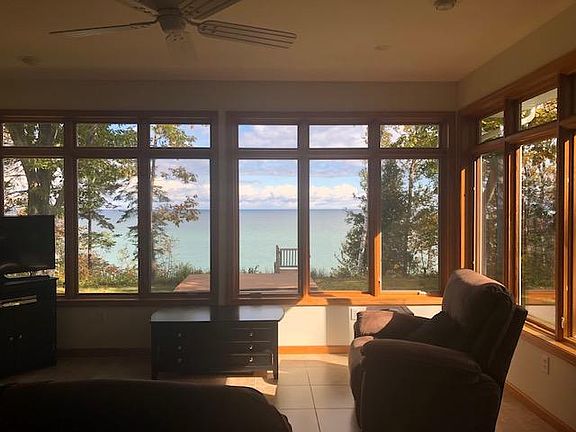 Admire the breathtaking views of Lake Huron as soon as you step into this spacious immaculately maintained 3 bdrm/2 bath home. Enjoy an open concept that includes two separate living spaces each with its own fireplace. Your choice, burn wood or turn on the new natural gas fireplace insert. Beautiful tiling with in floor heat, Shaw COREtec luxury vinyl plank flooring PLUS 9' ceilings. Sutton Cliffs hickory cabinets with upgraded granite in the kitchen and powder rooms. All new appliances and freshly painted. An abundance of natural light with artisan Pella transom windows to take in the amazing views. Home exterior, sidewalks, porches, Trek decking and Trek stair treads to the lake all recently professional cleaned. Epoxy sealed floors in the 2.5 attached garage.