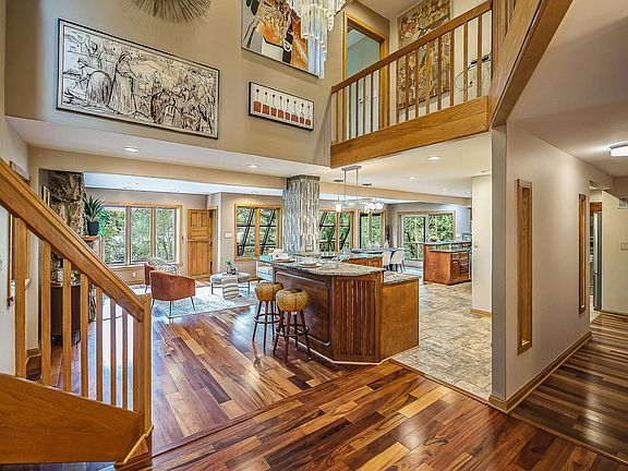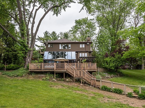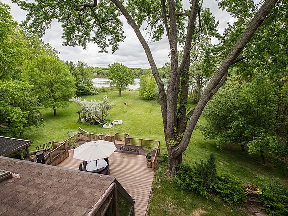 This stunning 4-bedroom, 4.5-bathroom lakefront escape is set on 6.1 acres of lush, wooded privacy along the shores of Pleasant Lakea private, all-sports lake perfect for year-round activities. With its charming cottage-inspired design and tranquil surroundings, this property strikes the perfect balance between serenity and adventure. Recent updates enhance its appeal: a durable 2-year-old steel roof, a new water heater, enduring 15-year-old Pella windows, a newer furnace, and freshly stained cedar siding that exudes timeless character. As you step into the welcoming slate-tiled foyer, the home's grandeur unfolds before you. The open floor plan offers breathtaking lake views from nearly every room. The living room, with its rich cherry wood floors and a floor-to-ceiling Fieldstone wood burning fireplace, creates a warm and inviting atmosphere. The kitchen is a chef's dream, featuring tile floors, granite countertops, stainless steel appliances, and exquisite St. Charles solid cherry cabinetry. A thoughtfully designed bar area, complete with a mini fridge, service sink, and ample storage, adds to the home's functionality. Adjacent to the kitchen, the dining room offers beautiful lake views and opens to a west-facing Trex deck, the ideal spot for sunset grilling. The main level also includes two spacious bedrooms, a cozy shared den, a full bathroom, a guest half-bath, and a generously sized laundry room equipped with a utility sink for added convenience. Adding unique character to the home is a dramatic two-story atrium that leads to the walkout lower level, designed for effortless entertaining. This versatile space features slate tile flooring, a wet bar with a mini fridge, and a full bathroom. Bi-fold doors completely open for a unique indoor/outdoor experience and leads to a sprawling south-facing Trex deck with stunning views of Pleasant Lake. The expansive yard is a true retreat, complete with a private gazebo and swing, a dock for water activities, 276 feet of pristine lakefront, and a charming firepit for cozy nights under the stars. The upper level is home to a luxurious primary suite, thoughtfully crafted as a serene sanctuary. This elegant retreat includes a spacious sitting area, a custom-designed surround for the electric fireplace (with a flue ready for future upgrades), and access to a private balcony. The en-suite bathroom exudes sophistication, featuring porcelain tile floors, a marble-surround shower and separate soaking tub, double vanities, and skylights that fill the space with natural light. A large walk-in closet, complete with a cedar-lined section, offers ample storage. Also on the upper level are a second beautifully updated full bathroom and a versatile fourth bedroom, currently utilized as a home office. This storybook lakefront property is a rare gem, offering unmatched beauty, privacy, and functionality. 1 year lease. Option for short term or executive. Renter responsible for electricity, gas, internet, and cable. Landlord responsible for water and service.
