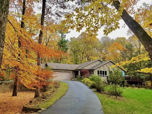 Secluded Private setting in Rockford School District. This spacious custom built executive home sits on 2.64 acres on a private drive. This home features nearly 4,000 finished square feet, 6 bedrooms, 3 full bathrooms, vaulted ceilings in the living room, Kitchen, and dining area, lots of windows with beautiful wooded views and natural light. Living room features a gas log fireplace, beautiful wood floors, Kitchen features Ceramic flooring, center Island with Stainless Steel top, Granite counter tops, built in desk, eating area. Primary bedroom suite offers a large walk in closet, spacious walk in shower, dual vanity sinks. Additional 2 bedrooms, full bath, laundry complete the main floor. Lower level walkout boasts Family room with wood burning Fireplace, Rec room, 3 additional bedrooms and a full bathroom. This home is equipped with a Generac 20k auto transfer whole house generator back up system (Installed in 2020). This home also features a 3 stall attached garage with Hot and cold running water. 32x48 Pole barn (2019) with 12' ceilings, 12' overhead door, insulated attic, cement floor, electric, and a wood stove for heat. *Many newer home updates including 45K Primary suite upgrade, paint, flooring, all new (39) solid 3 panel interior doors, brand new 30K Roof installed by Irish Roofing & Exteriors Dec 2023 and more...