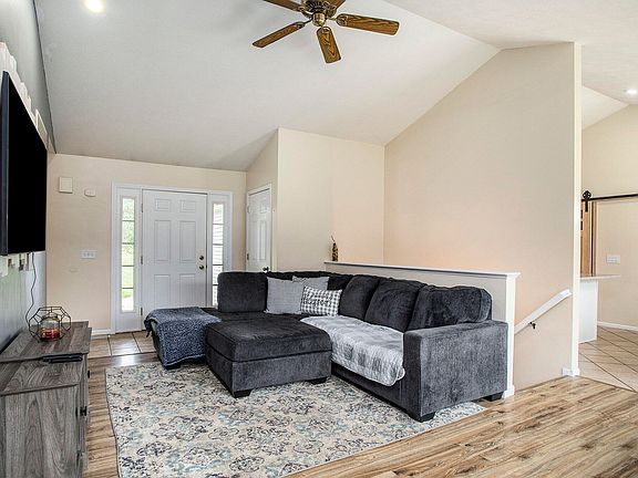 Harper Creek Ranch!! Enter to a cozy living room with vaulted ceilings and tons of natural light. The open concept design allows you a view of the dining and peninsula bar for the kitchen. White cabinets in the kitchen with a barn door masking a great pantry. Large deck out the kitchen sliders overlooking the vast fenced back yard. Main floor laundry and a 2 car garage finish off this side of the home. On the other you'll find a considerable sized primary suite with walk-in closet. 2 other bedrooms on this floor with another full bath. The 3rd bath is in the basement along with a sizeable family room and potential 4th bedroom. Pool table, safe and sectional to stay. Basement also features additional storage and hobby room. Come see what this home has to offer!