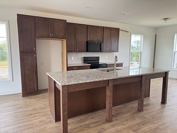 Open-Concept Kitchen with Granite Countertops, center island and brand-new