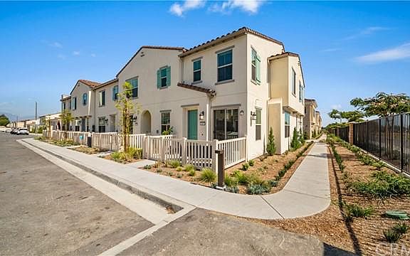 Built in 2021, this lovely 3-bedroom, 2.5-bathroom condo in the gated Foothill Grove community features an open concept floorpan, wood-look luxury vinyl plank flooring in the great room, and a front courtyard! This end-unit condo is attached only on one side, and boasts many energy-efficient features, including fully paid off solar panels, a tankless water heater, and dual paned windows! You are sure to enjoy the large kitchen island with a gorgeous stainless steel single basin sink and beautiful quartz countertops. The primary suite features a private covered balcony, as well as dual sinks and a separate tub and shower in the bathroom! The laundry room is conveniently located upstairs. This street is private, with a community gate that only opens for emergency services. The Foothill Grove community offers many amenities, including a pool, spa, and tot lot, and the location offers quick access to Route 66 and the 210 freeway. Here you are just minutes away from great shopping and dining options in Rialto! Community is FHA & VA approved! Property tax rate effectively 1.79% including special assessments.