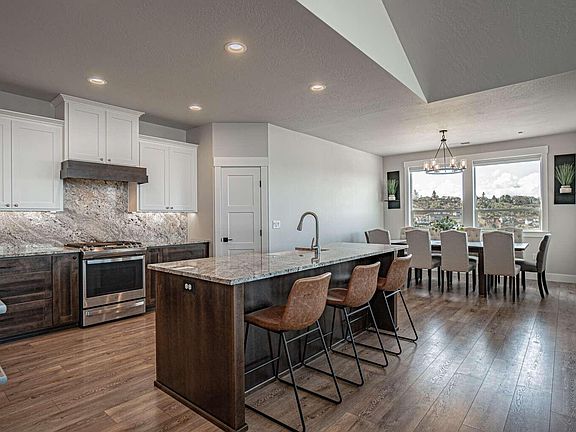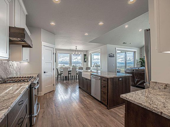 Custom home built in 2023 in East Medford gated community. Situated on 0.4 acres utilizing outdoor spaces and giving stunning views of the valley. There are no stairs to enter the main level living. The main level features wider ADA accessible doorways, primary bedroom with ensuite bathroom, kitchen, dining area, living room, guest bedroom, full bath, laundry room and access to the garage. Lower level has 2 bedrooms, full bath, living room and a separate playroom that can be used as a 5th bedroom if needed. Both floors have large, covered decks and there is also an outdoor patio with propane fire pit and plenty of room for entertaining. All windows have custom window treatments. The two car garage is extra wide and deep for lots of storage.