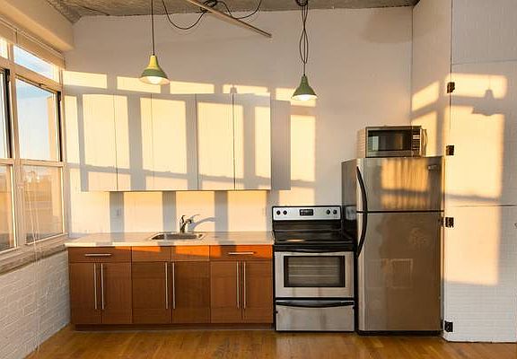 Gorgeous open loft space available ASAP! The LOFT apartment has high ceilings, stainless steel appliances, renovated bathroom, and lots of cool charm (high ceilings, hardwood floors) & sunlight! The building is a one-of-a-kind loft building that has an amazing courtyard, laundry room, yoga studio, and Kave Cafe in the building. Shipping center/package room and pet store also. Great location, right off the Morgan L train, near Roberta's Pizza, 983 Restaurant, L-Mo's Grocery, etc.. No broker fee!