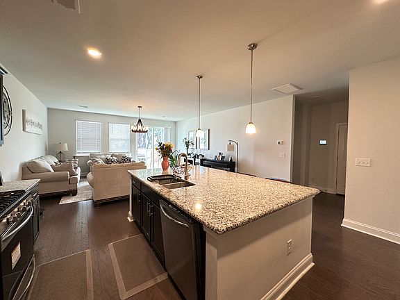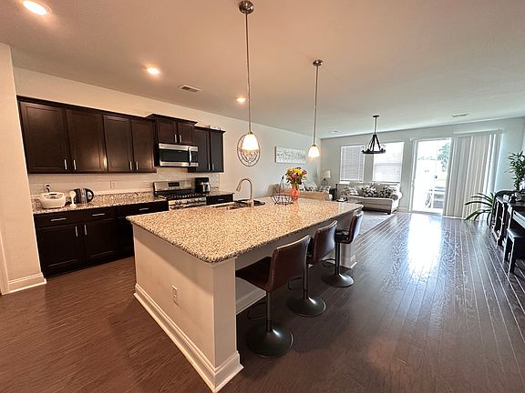 The house is a very popular 2 story, open floor plan with a first floor owner's suite. Beautiful hardwood throughout the dining room, kitchen, and living room. Huge kitchen with ample counter space and 36" staggered cabinets, granite counters, nice size pantry, and an oversized counter height working island that overlooks the living room which is perfect for entertaining. Very spacious 15 x 20 ft. owner's suite with a massive walk-in closet. Owners bath has double vanity, tile floors and 5 ft. walk-in shower. Off the entry foyer stairs lead up to an amazing bonus room/loft that measures nearly 20' x 20'! 4 large additional bedrooms, laundry room and 2 full baths finish off the upstairs. The Parks at Carolina Forest offers incredible amenities including a resort-style pool with lazy river, state-of-the-art fitness center, clubhouse, scenic walking trails, playground, and the historic Ten Oaks Park. The backyard of this house faces the Ten Oaks Park!! There is also an automatic irrigation system. It's a must see!! Owner pays HOA fee. Trash pickup service and pool access are included in rent. credit score of 650+ and household to rent ratio of 3.5+ are required to apply this house. one year