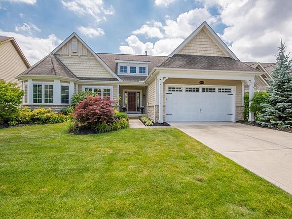 Stunning home with an exceptional views that can be enjoyed from the upper level composite deck, the florida room or the covered lower level paver patio. Backs to the creek! Wooded lot. This 4 bedroom home features 3.5 baths, a formal dining space, grand/open great room w/a wall of windows overlooking the tree line that opens to the eating space and gourmet kitchen w/granite & stainless appliances. Off the eating area is the florida room & upper level deck. 1st floor Master has views of the exterior tree line too. Super Master bath w/everything you'd expect. The lower level has a large family room with fireplace, wet bar and theater room and walks out to the paver patio and rear yard. HOA covers lawn care, irrigation start/shutdown & snow removal! Carefree living in your own home! WOW!!