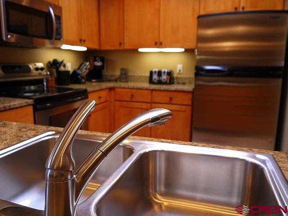 Fully Furnished Downtown Condo! This like-new 2 bedroom 2 bath condo enjoys all the amenities of a maintenance-free lifestyle in the heart of downtown Durango! Enjoy the convenience of taking the elevator down to historic Main Avenue, which boasts more restaurants per capita than San Francisco. Or invite friends over for an evening on the shared roof-top deck, or a private dinner in your condo looking out to the gorgeous Animas Valley. Crisp and clean with high ceilings, granite countertops, and stainless steel appliances, Crossroads Durango returns to the old world philosophy of living and working in the heart of the downtown community with style. The open kitchen offers granite countertops, breakfast bar, stainless appliances, custom solid wood cabinets and soft-close drawers. Features include a fireplace with tile surround and remote, master bedroom built in vanity, ceiling fans, sky light, and more. Underground parking and convenient private storage unit and shared bike storage are included, as well as main lobby front desk with breakfast bar & kiosk, access to conference rooms, fax and copy machines on the floors below, and a shared rooftop deck overlooking Main Avenue.