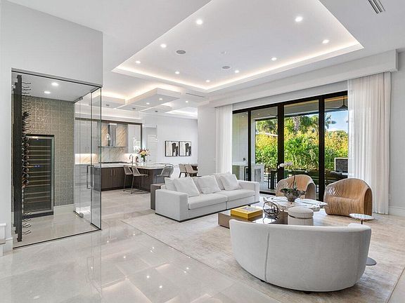 Welcome to Turnkey Exquisite Luxurious Living in the heart of the highly coveted Boca Villas neighborhood. This stunning 2 story residence offers a seamless blend of sophistication and convenience. Boasting a total of 5 en-suite bedrooms and 5.2 bathrooms, this home is designed for both elegance and functionality. The main floor features a beautiful master suite with his and her walk-in closets and vanities, providing a private oasis of comfort. The impressive porcelain floor entry sets the stage for an open-concept view of the great room, adorned with tastefully selected Artefacto and RH furnishings, plus, wine room, kitchen, and covered patio, creating a perfect space for entertaining. As you enter through the soaring 28' foyer, you'll be captivated by the detailed backlit tray Welcome to Turnkey Exquisite Luxurious Living in the heart of the highly coveted Boca Villas neighborhood. This stunning two-story residence offers a seamless blend of sophistication and convenience. As you enter through the soaring 28' foyer, you'll be captivated by the detailed backlit tray ceiling and elegant cloud lighting, adding an extra layer of sophistication to the ambiance.