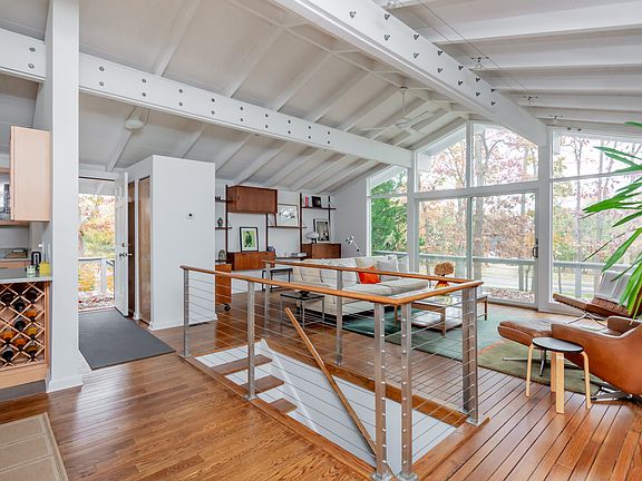 This pristine Mid-Century modern home was so tastefully renovated and furnished with the Bay just across the street and wrap around porch on the second floor. Open Living on Second floor with Floor to Ceiling windows and 2 sets of sliding glass doors. Just outside the historic district of Springs this home is located just minutes from the beautiful bay beaches of Gerard Drive & Maidstone. Three bedrooms and 2 baths set on .80 acre, this is the perfect summer rental.