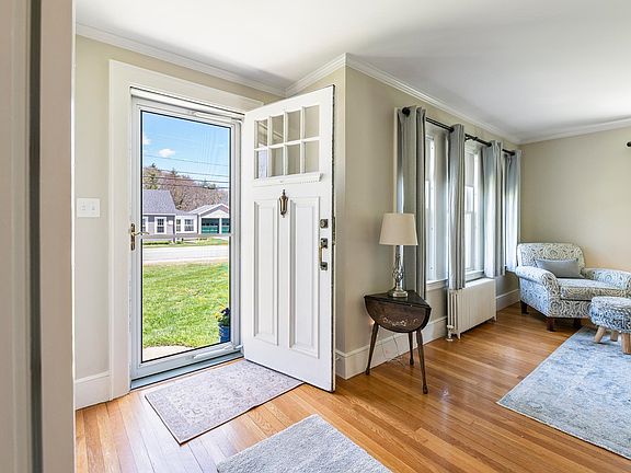 Meticulously maintained stunning cape style home ready for you to move in and not lift a finger! Completely updated home with granite countertops in the kitchen & stainless appliances, formal dining room with built in corner cabinets and double light glass french doors open to the entryway. Spacious living room with lots of light, gleaming hardwood floors throughout. First floor bedroom or den with adjacent full bath and nearby closet space for stackable laundry. Two bedrooms on second level, and a roomy half bath with enough space to add a clawfoot tub. Washer & dryer stay, new boiler, hot water heater, new granby oil tank all located in the full size walk out basement with good light, storage closet, and workbenches. Now time to rest up and sit on your back covered porch overlooking 1.32 acres of mostly green grass as it leads into the woods behind you. Lots of space to garden or play baseball, volleyball or soccer! Great place for a firepit too ! This beautiful home allows you to just enjoy yourself as all the work has been done for you ! Easy access to I 95 and Coastal Rte 1, less than 10 minutes to the Shipyard, downtown Portsmouth NH and Strawbery Banke, 15 min. to beaches, and approx. 1+- hours to Boston, Portland or Manchester airports and the lakes nearby! Move in now! OPEN HOUSES ON SAT. MAY 18th 10:00- 12:00 & SUN. MAY 19th 10-12:00